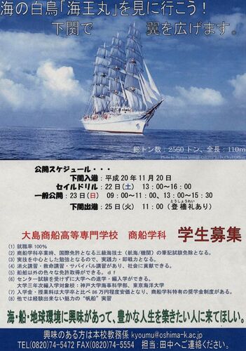 DENさんの母校は就職率100%が売りのようです。 DENさんから送付いただいたパンフです。 大島商船高等専門学校に興味がある方は、 教務係 担当田中様にご連絡して下さい!!