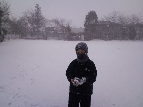 滋賀の実家も吹雪です(⌒~⌒) ムスコと雪合戦を楽しみました(^o^)/