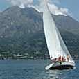 2007-05-25 知林ヶ島 ヨット部 #練習用 5/20、平川沖でのスマイルカップ観戦の後、 少し足を伸ばして知林ヶ島に行きました! タイミング悪く、指宿トライアスロンが実施されておりましたが、 なんとか指宿国民休暇村のところまで車を入れることができました。 当日の陸繋砂州(りくけいさす)は、17時に部分的に水没する とのことでしたが、14時前の状態は写真のように、 これが水没するのかと思えるほど、幅の広い砂州となっていました! また、非常に有名になったのか多くの方が来られていました!! 得意のグーグルアースで見てみますと、 結構長い砂州であることがわかります。 ちょうど1キロで、子供の足で片道30分くらいです。